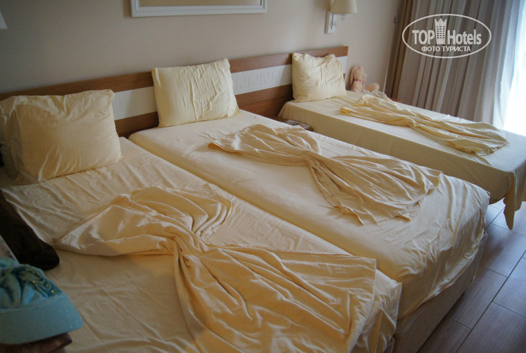 Меня больше раздражало зеркало, которое у телевизора напротив кроватей.Если стоишь, то видно только филейную часть, а сидя смотреть в него не за чем. Накраситься нереально(слишком темно).