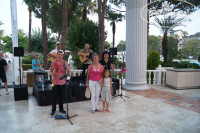 привет всем кто отдыхал в этом хорошем отеле ! общее впечатление - отель превзошел наши ожидания ! достойный отель на 5. номера удобны ( все стандартны самые тихие корпуса 2и3) даже умывальник по соседству не мешает а как то прикольно даже. кровать удобная спать нормально. уборка тоже хорошо. сервис не плох (при заселении обнаружили сломаные запоры на слив в раковине позвонили сделали сразу . скорее это специально сломали предыдущие жильцы-соседи говорили буйные были). мини бар пополняли постоянно пепси фанта(месная) спрайт(или как он там) минералка(все по 2 бутылки) + 1.5л. просто вода. (бесплатно ) что удивило так это платный сейф 2 бака в сутки (первый раз вижу в норм отеле) . территория очень зеленая( конечно не хватает цветов для красок ) ухоженная чистая и хорошо спланированная. 3 горки 1 для детей и 2 взрослых. волновой бассейн ( волны слабые но для детей женщин само то). пляж хороший большой чистый заход в море твердый галька рекомендую обувь спец..( видели в море настоящего живого осьминога пацан с маской увидел а я сначала не понял что это жене показал испугалась ) . питание в отеле очень хорошего качества( может чуть чуть мало барнины-говядины в плане приготовления и тунца плохо повара готовили засушивали) вино в бутылках на столах (и в холодильниках) красное сухое ( я разбовлял вишневым соком клас освежает) белое полусухое нормальное даже жене понравилось!! в лобби баре(пьяный бар) гавана клаб (ром импр) текила ( есть местная а есть импортная я только через неделю узнал после дачи чаевых бармены показали и стали нормально все наливать) бейлиз местный но ниче! спиртное вобщем хорошее даже водка сваровски хорошая! в ресторанах вообще ребята крутятся как белки очередей нигде нет отель полон а в ресторанах всегда есть столики ( вру было одтн раз пришли мест нет жена говорит не поняла - я к официанту 1 доллар он сразу нашел место все убрал спросил что принести и тд и тп.) вобщем очемь молодцы! тематические вечера постоянно живая музыка выносы блюд с фейерверками фруктов море и что важно хорошего качества. анимация не навязчивая но хорошая. очень профессионально все делают. серега и андрей у взрослых( дарт и боча). а у детей вообще супер команда аниматоров. очень хорошее отношение к детям да и ко всем отдыхающим!!! вобщем впечатления от отеля очень хорошие хочется туда еще раз как минимум( или 2 или 3)!!!! мое мнение лучше заплатить 100 тысяч за 10 дней и поехать сюда чем 70 и в какой нибудь гранд ринг или кемер бич ( ну типа того) уровень и качество здесь будут лучше да и впечатления останутся хорошие. для сомневающихся ехать или нет ЕХАТЬ ОДНОЗНАЧНО!!!!!( извините что поставил 5сминусом за размещение просто после получения хороших чаевых могли и побыстрей заселить !!) ВСЕМ ХОРОШЕГО ОТДЫХА ЕЗЖАЙТЕ ОТДЫХАТЬ В PGS WORLD PALACE!!!!!!!!!