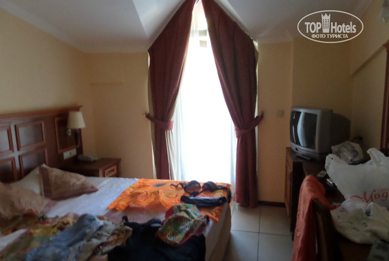 Здравствуйте! В Турции была первый раз, в целом всё замечательно. Напишу кратко, но правду!!! Фото отеля, на сайтах видимо очень старые, выглядит чуть по другому. Детского бассейна там давно нет, но дети прекрасно проводят время и в большом бассейне. Рядом стойка другого отеля уже закончилась, она не беспокоит!!! Питание не разнообразное, в основном овощи: перец, помидоры, огурцы, баклажаны. Фрукты- арбуз, дыня не спелая, персики и абрикосы. Мясо почти не давали, раза три, вечером, на гриле шаурма и всё... любителям мяса- будет скучно. Бар работает бесплатно с 9-30 до 21-30, после платно . Море далековато, можно пешком, но по жаре тяжко... Ходит маршрутка, по расписанию, бесплатно. Море конечно-супер, чистое, прозрачное, с Тайландом не сравнить. На пляже(зонт, лежак) - всё платно - это жесть !!!