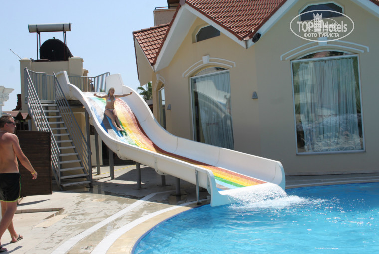 От этого хочу перейти к неприятному моменту. Русской невоспитанности! Не говорю обо всех, но есть такие личности, от слов которых воротит как от протухших яиц! (прошу прощения за такое сравнение, но это самое мягкое из того что я могу подобрать!) Именно РУССКИЙ народ! Это звучит гордо!!! А вы, те кто не уважает труд окружающих, хает все вокруг, вы ПОЗОРИТЕ нашу нацию! А теперь конкретнее: Если вы хотите действительно хорошего отдыха, вы должны сперва в своей голове ПОНЯТЬ что отдых всегда и везде хорош!!! А если вы хотите до каждый мелочи докапываться, то и в 7-звездочном отеле вам будет плохо! Не раз наблюдала такие ситуации в отеле, что женщины нагло и без какого либо стеснения при персонале называли отель "дерьмом"! (снова пардон, это цитата). Хочу обратиться к таким людям, которые вечно ноют что им еды мало, не вкусно, размещают плохо, не убирают, ходить далеко, туроператор фуфло, отель "дерьмо".... Как бы помягче.... Катитесь на курорты в 7* отель! Можете даже взять персональный тур! Там по вашему желанию за вами попу будут подтирать! И лизать хоть между пальцев ног! А не оскорбляйте людей которые работают на пределе своих возможностей! При чем выполняю СОБАЧЬЮ работу! "принеси подай иди нафиг не мешай!" И найдется же паршивая овца которой будет ВСЕ не так! Вот абсолютно! Хочу передать большое спасибо ребятам на баре и официантам! Они просто зашивались за весь день! В духоте, жаре, весь день, среди вечно кислых рож туристов! Да вы хоть день попробуйте так провести! И ведь улыбаются вам всем!!!!! Не смотря ни на что!!!! Хоть половина из вас того не заслужила!!!! Несколько раз поднимала одноразовые тарелки за нашими русскими туристами... Было просто противно смотреть на такое нахальное поведение! Даже в ситуации, когда мы потеряли телефон, ВСЕ к кому мы обращались были отзывчивы, пытались помочь! Жертвуя своим временем, деньгами (имеется ввиду баланс на телефоне, так как звонить с турецкого номера на казахстанский весьма затратно да и не каждый может в силу определенных причин). Лично лавный администратор отеля звонил в полицию, пытался с ними решить этот вопрос, а после раза 3-4 в день подходил и спрашивал как продвигаются поиски... К сожалению это результатов не дало, и мы обратились к нашим новым турецким друзьям. Попросили их, если что либо будет известно дать нам знать.. Еще минусом могу считать гальку на пляже...) Ну это лично мне не сильно нравилось) больно ходить) Но это не так страшно) В общем хватит о плохом.. Теперь самая веселая и лучшая часть!