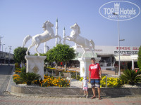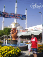 Территория. Да, маленькая, но нам она не нужна, в конце концов мы находились в поселке. Хочется погулять, выйдите из отеля, пройдите метров 300 и будут магазинчики, фонтаны, красивая мечеть, аллея, башня с часами, которые показывают время разных стран и наконец доброжелательные турки.
