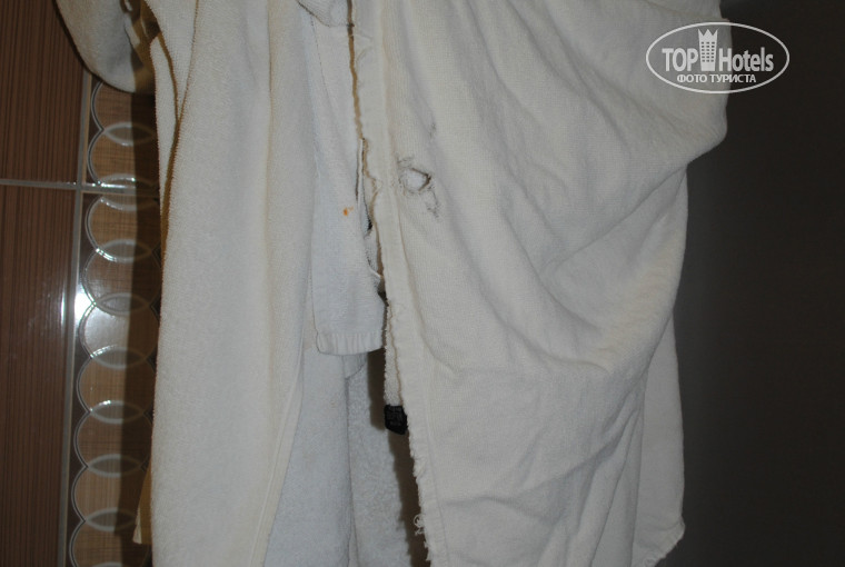 Излагаю все по-порядку, чтоб потенциальные туристы знали к чему быть готовыми. На рецепшене встретил парень с "кислым" выражением лица, несмотря на подарок улыбки или удачного расселения не получилось-отсылал нас 4 раза то через 40 мин подойдите, то через час, то через полчаса. В результате, к 14.00 нам дали ключ, мы зашли в номер и испытали шок: стены затертые, с раздавленными комарами(см фото), занавески на окнах грязные, полотенца затертые, в дырках (см фото), кондиционер холодный воздух не гонит, пульт от ТВ отсутствует, окно сломано и не закрывается вообще, на балконной двери замок не работает, лампы частично не работали, вид из балкона на хоз двор соседнего отеля. Кстати, комары там серьезная проблема-вечером балкон из-за них не открыть. Путевка у нас на 4 человек, застелено было только 3 места и полотенец столько же, шампуней и мыла вообще на 2 чел.