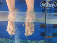 Очень много написано про отель. И в принципе все отзывы правдивы. Мы приехали в отель 27 июня одни от туроператора, остальных повезли в другие отели. Ехать от аэропорта минут 20-25. Заселили сразу, отвезли на машинке которая курсирует по отелю, маленькая такая как на поле для гольфа. Сначала поселили в номер 143 это ужас просто, а не номер. Нас было 4 человека и одному бы пришлось спать напротив плиты с одной стороны, входной двери, которая при открывании упирается в кровать с другой и туалета с третьей. Балкон малюсенький ванная комната тоже. Ребенок пулей вылетел из номера и сказал что он там не останется ни на минуту(за что ему спасибо). Пришлось идти и менять номер, на наше счастье были свободные номера и нас сразу же переселили. Номер 418(какой вид с балкона обалдеть).Веревок для сушки правда не оказалось, но мы всегда все возим с собой(включая прищепки, они ой как понадобились).Единственный минус номера шторка в ванной она настолько древняя, что пропускает воду и вся ванная комната залита водой, но мы купили за 1евро половую тряпку которая моментально впитывала всю воду и проблема была решена. Для кого-то минусом может стать кафельный пол. Убирались каждый день и полотенца тоже меняли, когда через день, когда каждый день, иногда оказывалось по два комплекта полотенец.