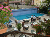 Привет всем путешественникам!Я останавливался в отеле Tonoz Beach с 06 по 13 июля.Отель расположен в 25-30 минутах езды от города Фетхие,в посёлке Олудениз с замечательной Голубой лагуной,наверное самым известным пляжем в Турции.Прилетели в Даламан по расписанию около 18-40 по местному времени.Но в этот отель завозят туристов последними и мы попали туда только около 23-00.На рецепшен никаких заминок,через пару минут получили ключи от номеров.Я отдыхал один,но мне достался двухместный номер.Мебель как из "Икеи",но всё новое.Кондиционер работал прекрасно.Ванная комната с душевой кабиной чистые и по-моему даже стерильные.Телевизор показывал 1 российский канал,встроенный холодильник на замке-нужно за отдельную плату брать ключ на стойке рецепшен.Так как я брал один только завтрак,то приняв душ и переодевшись возник вопрос об ужине,чувство голода выгоняло из номера в поисках пищи насущной.В отеле Tonoz Beach нет принципа шведского стола,здесь туристов кормят по меню.Ресторан отеля работает как для "своих" так и для любого типа посетителей,и эта практика распространена в районе Олудениза.Замечательно подкрепившись кебабом я пошел на разведку местности,благо в это время ночная жизнь в посёлке в самом разгаре.Для начала необходимо поменять деньги.В обменниках принимают без проблем и доллары и евро и английские фунты.Кстати,будьте внимательны,когда смотрите ценники в кафе и частных магазинах,они часто выставлены в фунтах,так как англичане на этом курорте в явном большинстве.Русские встречаются,но пока редко.В отеле нас было 6-7 человек и одна украинка.Курс доллара:1$=1,88 турецкой лиры.Довольно удобно считать.Отель своим фасадом выходит на оживлённую прогулочную улицу,куда как на променад вечером стекается большинство обитателей посёлка Олудениз.Основные бары и дискотеки с популярными ресторанами сконцентрированы здесь.У меня окна номера выходили как раз на улицу,но никакого дискомфорта я не испытывал,так как в час ночи,по местным законам музыка прекращается снаружи заведения и местная жандармерия за этим зорко следит.Завтраки в отеле довольно традиционные,сытные.Несколько видов колбасы,сосиски,овощи,несколько видов маслин и оливок,кофе с молоком и апельсиновый напиток,чай.Справедливости ради надо сказать,что за неделю отдыха просыпался на завтрак я не больше двух-трёх раз (вечера и ночи были насыщенные!).Море расположено буквально метров 50-60,городской песчано-галечный пляж,цвет воды нереально лазурно-голубой.Шезлонги и зонты платные 6+6 лир.Полотенца свои.Но многие располагаются на полотенцах на гальке и покупают собственные зонты-тенты.Хотя за неделю наблюдения я не заметил массово и активно купающихся,в отеле,например англичане просто облепляют бассейн и подходы к нему.На право от отеля по променаду,метрах в 500-ах,начинается знаменитая Голубая лагуна,многие ходят именно туда,да и приезжают из Фетхие и окрестностей ради отдыха именно там.Лагуна это заповедник,поэтому вход туда 6 лир,ну и лежак+зонтик соответственно по 7 лир,где-то 500 рублей.Есть кафе,где можно перекусить.В среднем кебаб и пиво обойдутся в 20-25 лир.Вода в Лагуне в среднем на 5 градусов выше чем в открытом море,поэтому детей из воды не вытянешь даже мороженным.Купаться действительно очень комфортно,но не стоит забывать,что самые красивые виды Голубой лагуны сняты с ближайших ск