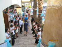 Отель расположен выше уровня моря, поэтому от пляжа к отелю нужно подниматься в пологую горочку, а затем есть небольшая лестница (см. фото). Сервис в отеле налажен очень хорошо, официанты не заставляют себя ждать, питание достаточно разнообразное и качественное. Да, если при заселении вам не понравился номер, то вам всегда предложат другие номера это в Аlva Donne обычная практика. Вообще надо отдать должное всем службам отеля, они очень чутко реагируют на пожелания своих жильцов. Очень порадовал гала-вечер, когда были празднично накрыты столы в ресторане и у бассейнов, всем дарили розы, в саду выставили различные угощения, тут же повара на гриллях жарили всяческие вкусности, и изобилие фруктов, и огромный торт мороженное и фейрверк и отличное выступление танцевальной группы и в финале вечера представление всех сотрудников.