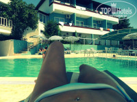 Территория отеля не большая,но мы то приехали не в отеле сидеть. Есть бассейн с баром, небольшой магазин и столовая. В отеле два пляжа с баром, довольно большие,на пляже бесплатно шезлонги,зонтики,мягкие груши,беседки с мягким матрасом, всегда и на всех их хватало. Вода в море чистая, прозрачная и очень даже теплая!