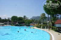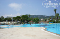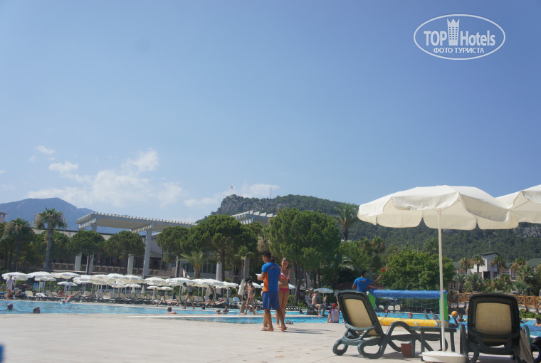 Территория большая, вся в зелени - очень ухоженная и чистая! Несколько больших бассейнов с чистой водой (хлорка не чувствовалась). У бассейнов и на пляжу есть бары, где всегда можно не только перекусить, но и плотно покушать.