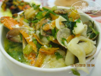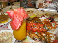 Питание тоже нормальное, единственный минус - мало фруктов, были только апельсины, яблоки, финики и пресные дыни. Но голодными точно не останетесь: мясо, рыба, супы очень вкусные. Из морепродуктов еще один раз подавали кальмаров. Поэтому мы ездили в Шарм, старый город, в ресторан Фарес и там уже отъелись морских деликатесов! Кстати рекомендую этот ресторан - фирменный суп из морепродуктов (там краб, мидии, кальмары, креветки) стоит 35 фунтов, это 5 долларов, самое дорогое блюдо - рыбное ассорти (ландуст, огромные креветки, крабы и т.д. на гриле) стоит 210 фунтов, т.е. 30 долларов, но съесть все за раз трудно и можно забрать с собой. Очень вкусный мангово-арбузный фреш, рекомендую (20 фунтов). Принимают наши банковские пластиковые карты VISA без проблем.