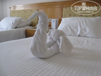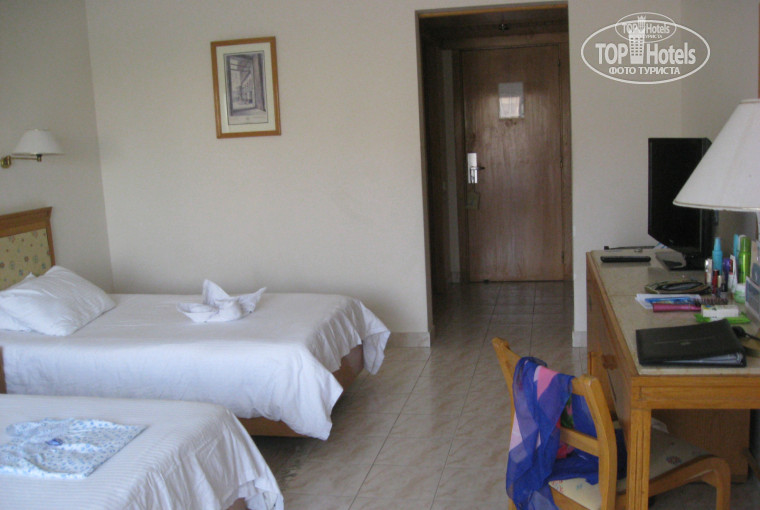 Всё достойно! В номере всё для удобства, очень просторно, мебель не новая, но добротная. Полотенца менялись каждый день, за 1$, оставленный на столике, можно получить вместо полотенца фигуру лебедя или лилии ))) Мы жили в 4 корпусе (между своими называемом "русским" корпусом). Территория отеля большая и зелёная. До моря идти минут 5-7, можно ехать на машинке. Пляж - крупный песок, вход в воду по пантону, т.к. с утра вода уходит и по кораллам идти не удобно. На пляже душ, лежак, зонт, бар, где неограниченно напитки (если All). Анимация замечательная, дети в восторге, да и взрослые. А вот дискотеки вечерами не очень - народу маловато, музыка не самая интересная, мы ездили с аниматорами на дискотеку в город - намного лучше!!!
