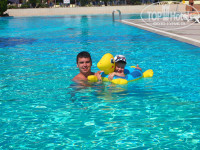 Развлечение: На территории отеля есть 4 водных горки, 3 из них работали, детский клуб, площадка, теннисный корт( мы бронировали время и спокойно играли, ни чего не платили и ни разу нам не отказали), есть футбольное поле, мини гольф, волейбол на пляже, спорт зал. На пляжу есть детский бассейн и бунгало их можно зарезервировать с 10 до 12 хоть на каждый день, на пляжу есть бар и волейбольное поле, лежаков хватает на всех. Пляж песочный и от этого вода у берега мутная, но не грязная,как писали в др. отзывах. Около главного бассейна каждое утро проходит аквааэробика. Анимация слабенькая, но нас это не смущала, каждый вечер проходила дискотека с 23 до 2 ночи.