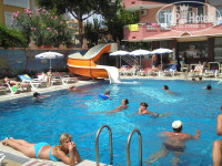 Преимущество этого отеля- немного номеров и тесное общение с людьми, кот. там живут. Мои дети получили возможность общаться на английском, русском, учить турецкие слова:))). В отеле во время нашего отдыха, собиралась приличная публика воспитанных людей. НЕ было пьяных, не слышно было русского мата, хотя большинство русских было. В основном семейные люди. Били отдыхающие из Германии,Македонии, Турции, Белоруссии, Украины. Про русских писала выше- их подавляющее большинство. Дети мои активно общались с детьми, кто был в отеле. ПРичем,местом тусовки был бассейн! С моря придем и дети после обеда- в бассейне. Играют, разговаривают. Если игра, то и языковой барьер относителен, так как если что не понятно-" на пальцах"-дообъяснят!Так было при общении с турецкими детьми, так как по англ. они -слабо и по русски -тоже. Детям больше всего на отдыхе понравилось именно общаться, а не море и экскурсии:)))))))