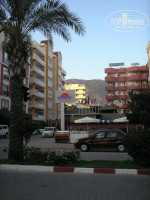 2. Первое впечатление об отеле. Приехали рано-рано. Все спят. Показалось как-то СКРОМНО...Территории у отеля фактически нет, как заходишь-бар под большим навесом и под этим навесом столики со стульями, где кушают, затем бассейн, и вот оно здание отеля. За зданием есть малюсенькая детская площадка, там горка , качели и столик для игры в пинг-понг. Вот и все. На отель буквально "нависают" жилые дома турков. Я еще подумала:" Ну чего расстраиваться, 3 звезды..." Номера для нас с самого утра не нашлось, так как все занято было. "Окольцевали" нас бирками отеля,заполнили анкеты,позавтракали, кинули на рессепшене сумки и пошли на море- купаться.