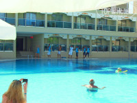 Читала в отзывах, что персонал не говорит на русском и английском. Неправда! Говорят и понимают. Вообще отель очень понравился(хотяраньше отдыхала в более дорогих). Рядом остановка можно съездить в Сиде и Манавгат.