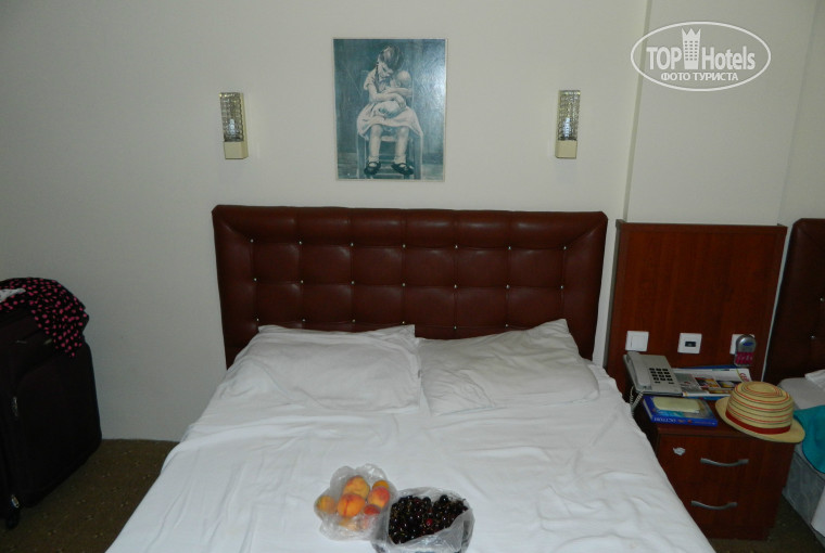 Приехали мы утром в 7 часов. Что самое главное - разместили нас сразу, мы ни минуты не ждали. Номер замечательный: большая кровать + ещё одна односпальная кровать. В номере чистенько. Что порадовало - всегда была горячая вода! Это здорово! Единственный минус - отсутствие балкона. Но и к этому мы приспособились. Сушили вещи на окне, высыхали достаточно быстро.