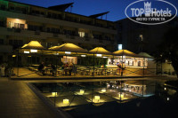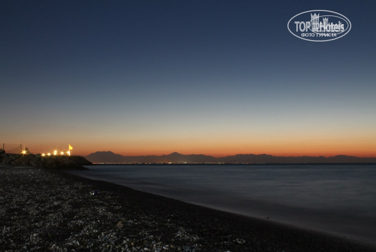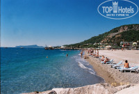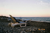 Пляж песок+галька. Мог бы быть и почище, наверное. Чтобы не скакать по камням, можно заходить в воду с понтона (кажется, принадлежащем соседнему отелю.)