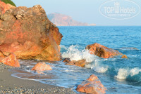 Зато море – просто сказка! Накупались и назагорались вдоволь! Народу мало, лежаки всегда были свободные, напряженка была только с зонтиками. Слева от спуска к морю народу было всегда больше – там более пологий вход и мелкая галька. Но нам приятнее было уединиться справа и в тапочках заходить в море по плите. Вода прозрачная, рыбки плавают, красота. Рядом с берегом риф – красивый вид, смельчаки плавали к нему, там даже стоять можно было. Мы не профессиональные пловцы, так что не рискнули) На пляже «работал» бар – юпи и воды пейте сколько влезет, а вот бармена не дождетесь. Но это было и к лучшему: пьяные и громкие соотечественники испортили бы всю идиллию.