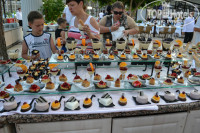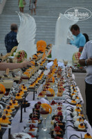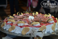 Сладкий стол- это песня. Свежие и вкусные бисквитные торты с фруктами и заварным кремом, торты-муссы, заварные пирожные с апельсиновым и заварным кремом, политые шоколадом, масса турецких сладостей. В общем, чего только не было. Я большая сладкоежка- для меня там был рай.