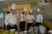 Новое по отелю. Я много читала отзывов по отелю, но никогда не видела информации вот о чем. В отеле каждый четверг в 16-00 часов в итальянском ресторане шеф-повара проводят мастер-класс по приготовлению блюд турецкой кухни. Участие бесплатное. Мне предложили поучаствовать девочки из отдела по работе с гостями. На наш день записалось 25 человек, но к сожалению пришло нас только двое. Но как говорится «меньше народа, больше кислорода». Ну что сказать – классно! Через переводчика Светлану, она же менеджер по работе с гостями, она же красивая и очень приятная турчанка, общались с шеф-поварами. В начале нам выдали фирменные фартук и косынку, которые потом подарили. Готовили мы 3 блюда- горячее (куриные рулетики), салат и десерт. Дегустировали приготовленное. В конце нам вручили сертификаты и папки с рецептами. Вот так. Надо сказать, что турки –очень приятные в общении, мы беседовали не только на темы приготовления. Так что, если у вас будет возможность- обязательно поучаствуйте в данном мероприятии, не пожалеете.