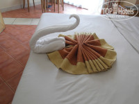 А да насчёт экскурсий не берите их у гида у него очень дорого!!!Мы брали у Аймана,это в турфирме по дороге на пляж!!!мы на кровати каждый день оставляли доллар и всегда из полотенец были выложены какие нибудь фигерки.