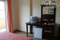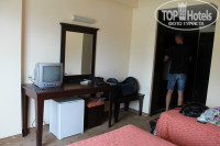 На следующий день в 12:00 заехали в другой номер на 3 этаже, с видом на горы и бассейн. мебель простая. все, что необходимо - в номере имеется, даже маленький телевизор с несколькими русскими каналами, вся техника работала без проблем. сейф платный, с нас за 10 дней пользования Роберт содрал 7 долларов.