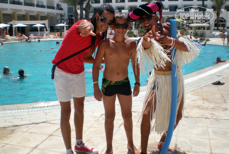 В Тунисе отдыхали впервые. Ездила с сестрой и племянником. Отель очень понравился. Разместили нас достаточно быстро. Номера уютные, чистенькие, есть все, что нужно : сейф, холодильник, телевизор, вентилятор и т.д. Питание отличное - большое разнообразие и все очень вкусное) Персонал и обслуживание на высшем уровне, все работники отеля очень вежливые, улыбчивые и просто хорошие люди) На территории отеля находится шикарный сад с большим количеством цветов и деревьев. И конечно же, отдельно хотелось отметить аниматоров этого отеля. Каждый день по несколько раз танцевали везде (и возле бассейна, и вечером у сцены), а также, каждый день проводились гимнастика, водная аэробика, водное поло, степ аэробика, йога, и т.д. Больше всего понравились Мади и Каркуша(или Картоша, я так и не поняла;)) Мади просто великолепный танцор, всегда веселится и поднимает всем настроение.Он просто клевый парень* Очень любит свою работу и это видно))) Каркуша наверно самый трудолюбивый и спортивный. Он проводит все: и гимнастику, и водную аэробику, и водное поло, и степ аэробику....и занимается вместе со всеми, когда проводит кто-то другой...Вообщем все аниматоры просто супер ребята - Мади, Каркуша, Зизо, Калюча, Шубу, Эйо, Альпачино, Катя, Маша, Настя, Света....Все очень любят детей! Каждый вечер была какая-либо развлекательная программа - это и танцы наших аниматоров, и выступления факиров и йогов...ой чего только не было, приезжайте и сами все увидите))) В целом отдых очень понравился, и в конце очень не хотелось уезжать обратно, уже по всем скучаю и надеюсь вернуться=) Отелю я бы поставила твердую 5ку)))
