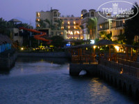 Небольшая,но ухоженная,видно,что за порядком следят,много зелени.4 бассейна глубиной от 90см до 160,есть 2 крутых горки,попрыгать тоже есть откуда.2 детские площадки(на пляже и у бассейна)4 бара:1 круглосуточный в главном корпусе,2 у бассейна,1н на пляже.В барах хорошее пиво,ром.молочные коктейли.С утра до вечера в баре у бассейна дают мороженое.На территории есть магазины с сувенирами,аптека,продуктовый-цены в них завышены в разы(в городе дешевле)