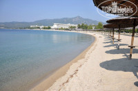 много пальм, хвойных деревьев, но травы мало. Длинный пляж. Возле Мелитон (второго отеля) большой причал для яхт. Возле него продуктовый магазинчик (Цены в нем очень приемлимые: сок апельсиновый 0,97 еврО, виноград 1,5 еврО, почему то тоже самое вино в нем стоит дешевле чем в дегустационном центре - от 2,7 еврО, но об этом позже.). Хорошие площадки для детей. Много лежаков и зонтов на пляже.
