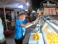 Что касается питания, то в предыдущих отзывах в принципе все рассказано. Некоторые жалуются на отсутствие мяса, мы ничуть не страдали, курица присутствовала постоянно в самых разнообразных видах, была рыба, мелкая не произвела впечатления, а вот рыбка в кляре очень даже ничего, часто готовили печень - очень вкусно. Но я больше налегала на овощи - повар их готовил превосходно. Фрукты присутствоали всегда: яблоки, очень сладкие апельсины, абрикосы, арбузы. Повар лично очень внимательно следил за всем, если что-то заканчивалось, всегда приносили еще. Очень понравился натуральный йогурт и соусы на его основе. По ним буду скучать. Лепешки тоже стряпали очень вкусные, печенье-кексы в 16.30 тоже ничего. Но нам хватало завтрака-обеда-ужина. Поэтому на перекусы мы ходили редко. В отеле были и маленькие дети - от 1 года, с питанием тоже все решалось хорошо. Утром есть молоко и хлопья, яйца, булочки, джемы, колбаса-сосиски. Примериваясь ехать на следующий год с малышом, думаю, к завтраку буду ему покупать йогурты в супермаркете через дорогу к завтраку, а в обед и ужин проблем вообще не возникнет. Кстати соки тоже в супермакете от 1,5 до 2 лир - недорого. Мне, так как привыкла дома, немного не хватало чая с молоком, но потом я просто брала молоко на завтрак. А так из напитков всега кофе, чай, горячий шоколад, фанта, спрайт, кола. Народ не жаловался на пиво - я до него не любитель. Вино красное и белое, подруге понравился джин. В целом питанием мы остались очень довольны. По вторникам и субботам ходили на рынок, брали персики и чершню. Но в принципе, рядом есть фруктовый киоск - цены не на много выше. На рынке надо торговаться. Это довольно занятно. Ксати рынок в субботу проходит возле часов, а во вторник - намного дальше. Зато есть возможность полубоваться дорогой красивым фонтаном.