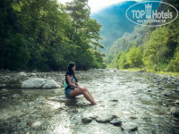1. У отеля маленькая территория, но очень все компактно устроено, зелень присутсвует, вечерами все разбредаются кто куда - никто никому не мешает. Номера отличные, чистые, все работает. У нас на двоих был трехместный номер, сдвинули вместе двухспальную и полутораспальную кровати - было вообще шикарно :)