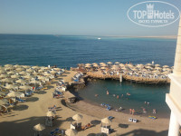 Отлично, что в море около отеля есть бухта, огороженая искусственным островом, см. фото.