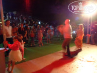 Система "всё включено". В главном ресторане на завтрак, обед и ужин шведский стол с богатым выбором греческой и международной кухни. На завтрак свежевыжатые соки. На ужин тематические вечера. При тебе пекут горячие лепёшки, блинчики, делают омлет, жарят свинину (рыбу, бараньи ребрышки), готовят греческий салат из желаемых ингредиентов. Отличное качество всех блюд. В течение дня работают 3 бара (однако, после 23:00 алкоголь за дополнительную плату, но барменом работал парнишка с Украины, проблем халявной выпивкой не было =). За обедом и ужином предлагают алкогольные напитки (пиво и вино). Вино одной марки "Лато" (красное и белое, больше понравилось белое). За ужином действует дресс-код (ну, как действует, лишь бы не в шортах или купальнике). Все отлажено, официанты расторопные, грязную посуду убирают оперативно. Всегда с улыбкой встречает опрятный администратор! Провожая, учтиво кивает…