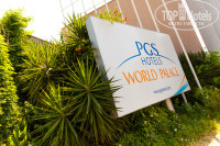 Чем мне нравится Пегас, так это отличной организацией самого отдыха. Это чувствуется сразу же на выходе из аэропорта. Шикарный автобус с работающим кондиционером, приятные трансферные гиды с их непринужденной манерой общения. Шутки-прибаутки в дороге, пусть даже не всегда смешные просто поднимают настроение. Молодцы. Ощущение праздника, особенно для тех кто тут в первый раз. Минут сорок примерно до отеля, за окном слева морские виды, справа силуэты Таврических гор в дымке. Красота! Что характерно, вдоль дорог полно всяческой рекламы, но она совершенно отличается от той что мы привыкли видеть у себя на родине в стране вечного путинизма. Она не напрягеат. Нет дебильных перетяжек через все шоссе, огроменных штендеров. Около 10-30 высадка из автобуса у PGS World Palace. Древняя как мир традиция кидать бакшиш в корзинку водителя автобуса. Мы всегда бросаем, нам не жалко. Выгрузка чемоданов, у входа в головное здание. Оформление документов на ресепшене. Очень приятные девочки турчанки, отлично владеющие русским. Что, это наверное второй язык тут по распространенности. Браслетики синенькие взрослым, желтенькие несовершеннолетним. Ну понятное дело, чтобы в барах не баловались. Народу в июле полно, поэтому просят обождать с заселением. Спешить некуда - впереди 10 дней отпуска, мы люди не гордые, подождем. В этом году непосредственно в при входе большой стол с вазами где всякие разнообразные печеньки. тут же что то типа мохито безалкогольного, ешь пей нехочу...В позапрошлом году не было - приятный бонус...