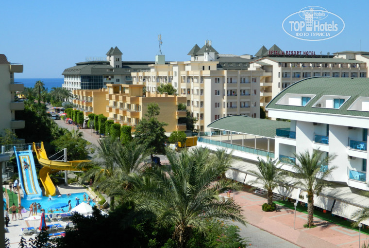 Территория небольшая, чистенькая, зелёная, всё уютно, но ощущается недостаток лежаков возле бассейна. Приходилось вставать в 6 утра, либо занимать место после приезда с дискотеки, ну а иначе никак. Полотенца , кстати, нужно взять с собой свои из дома.