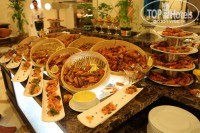Большое количество мясо, фруктов,сладостей,.Рыба каждый день.За десять дней два раза готовили суше и один раз увидели королевские креветки.