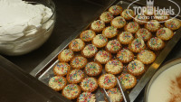 Питание - нормальное. Мне больше всего нравился завтрак - натуральный кофе в кофейниках, вкусные блинчики, булочки, джемы, яичницы, омлеты, и т.п и т.д. На обед и ужин всегда были и мясо и рыбка (вот рыбка не очень), а мясо - очень хорошо приготовлено! Разные гарниры, из фруктов - дыни, арбузы, виноград. Вкусные десерты, мороженое - всегда. Вино - бывало и лучше (на Крите мне вино больше понравилось), но белое со льдом - очень даже ничего! Хорошее пиво, все остальное - как везде. Днем работает снек-бак (у бассейна наверху, возле вилладжа), там можно было полноценно перекусить. Вообщем, не волнуйтесь - голодными не будете точно , но изысков не ждите - кухня добротная, почти домашняя, ничего испорченного, гнилого не обнаружила (честно!). Сервис в ресторане отличный (мы "выбрали" себе официантов - Карнела и Димитроса, они обслуживают на террасе на которую выходят окна корпуса с номерами на цифру 2. Очень быстрые, доброжелательные и веселые ребята!
