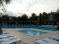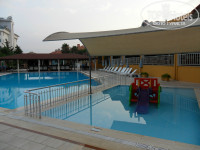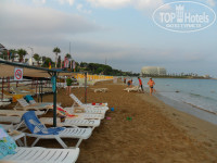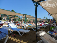 Были в отеле с 16 - 28 июля 2013 г. Разместили нас достаточно быстро, приехали еще до обеда, пообедали и после обеда уже получили ключи. Номер попросили на 3-м этаже, чтоб хотя бы сверху никто не топал. Слышимость в номерах слабое место данного отеля, номерной фонд представлен одинаковыми 3-х этажными домиками по 18 номеров в каждом. Слышимость с соседним номером через ванну была почти абсолютная, слышно весь шум в коридорах, на лестницах, хлопки дверями, громкие разговоры на всех этажах и все шаги по лестницам. На этом фоне кондиционер работал почти не слышно. Номер конечно аскетичный но жить можно, сейф совсем маленький, платный, мы им не пользовались. Wi-Fi в номерах не ловит, нужно идти каждый день за новым паролем на ресепшн, далее на отведенную недалеко от ресепшн зону с Wi-Fi, там есть стулья и несколько столиков. Питание разнообразием не отличалось, выбор блюд не большой. На завтрак есть практически нечего и если завтрак нчинается с 7:00, то жарить блины и яичницу начинали только с 7:15 - 7:30. На обед и ужин ситуация с питанием получше. В принципе голодными не останетесь но и на широкий выбор не расчитывайте. Ситуация с местами на пляже выглядит так что по ощущениям наш пляж был самый переполненый из всех соседних пляжей на побережье. Лежаки стоят плотными рядами, иногда трудно пролезть к своему даже, если Вам посчастливилось его занять до завтрака. В 6 утра выбор лежаков максимальный, далее хуже с каждой минутой. Как правило после заврака уже все заняты. То же самое у бассейнов. Везде с раннего утра накиданы полотенца отдыхающих, самих их бывает не видно и по пол дня потом. 26 июля открыли шахматную доску с полметровыми фигурами. Можно отметить хорошую работу детского миниклуба Тукан, детям там нравилось, они делали пиццу, которую им потом выпекали в печи и выкладывали в детском ресторане на обед, ежедневно им разрисовывали лица, были уроки плавания, выдали фирменную футболку и косынку., вечером анимация начиналась с детской дискотеки, в вс. у миниклуба выходной. В шаговй доступности от отеля есть много магазинчиков, торговых улиц и рынков. Если свыйти из отеля, повернуть налево, прогуляться ок 25 минут до надземного перехода и перейти на др. сторону шоссе то там есть достаточно большая торговая зона и даже 2 сетевых супермаркета А101 и еще с вполне демократичными ценами, правда в одном из них проблема с расчетом пластиковыми картами, наши VISA и Master Card не проходили, пришлось расплачиваться наличной валютой, в остальных местах проблем с оплатой по картам не было. Уборка в номерах еждневная. Очереди в ресторане и баре выстраиваются регулярно, готовят много полуфабрикатов. Сладкий стол не вкусный, все очень приторное, лучше бы давали бесплатное мороженное, хоть есть можно. Правда мороженное продается около бара у бассейна по цене 1 шарик - 1 $. На пляже кормят в основном картошкой фри, пончики и потом печенюшки, пекут еще 2 вида лепешек с разными начинками но как то они бесвкусные тоже. Море было теплое, но на входе на нашем участке пляжа много камней, дно не мешало бы почистить. Лежаки без матрасов, не понятно что отель находящийся в таком месте не заработал себе еще на матрасы для лежаков? В принципе можно и без них, но уже как то не привычно это выглядит когда на всех соседних пляжах матрасы прилагаются клежакам а тут нет. Утром к буйкам приплывали морские черепа