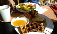 Едаааа-это было очень классно,особенно завтрак,несколько видов йогуртов,сыры,мед,шоколад,вафли,блинчики,фрукты,яичница и куча всегоооо))на завтрак можно было попить чай и кофе,а вот в обед и на ужин можно пить только в барах,очень красивый бар находится на ресепшене на 3 этаже.В часов 11:00 в барах около бассейна и на море были лепешки,картошка фри,фрукты,овощи...