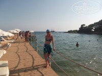 МОРЕ - пляж піщаний з мілкою галькою, вода прозора і тепла, на пляжі є пірс з шезлонгами, де можна засмагати і стрибати у воду. У воді видно як плавають маленькі рибки (ми їм кидали хліб).