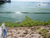 Море грязное. Кто-бы что не говорил, а оно действительно грязное: куча водорослей, веток каких-то, мусор с пляжа (т.к. урн на платных пляжах нет). Мы прошли по берегу от пирса где-то по километру в каждую сторону и море везде было грязным. Где-то чище, где-то на столько заросшее водорослями, что в него невозможно зайти. Причем этот зеленый планктон из водорослей от ветра может перемещаться, останавливаясь то тут, то там. От пирса в сторону Несебра море было почище.