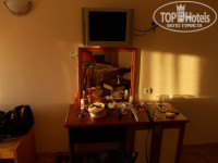 Размещение. Заселили сразу же, не ждали ни минуты (может потому что приехали вечером). Мы не просили ничего определенного, думаю это бесполезно, просить с видом на море и т.п., номер дадут какой свободен естественно, а не тот, который вы хотите)). В общем, нам дали очень хороший чистый номер с балконом и видом на море, но там было 3 кровати (отдыхала с парнем), мы попросили две соединить хотя бы). Кровати соединили, это нас не смутило вообще, спать было удобно. В номере душ, туалет, кондиционер, холодильник, фен, телевизор и мебель. Хочу предупредить, что шампуня нет, только жидкое мыло. Я брала свой. От чего была в шоке- один раз видела двух огромных жуков (именно жуков, а не тараканов!), они видимо залетели с дерева в коридоре и заползли в комнату. Чуть не умерла!!! Убили их, отнесли на ресепшн, на след. день вроде как сделали сан. обработку.