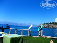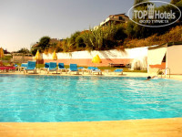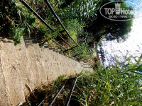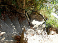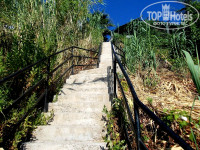 Территория отеля. Как таковой ее нет, отель ничем не огорожден. Имеется большой чистый бассейн с теплой водой, вылазить не хотелось. Всякие надувные плавательные штучки были)). До моря больше ста ступенек, об этом уже все писали, это пипец, поднимались с передышками, чуть в обморок не падали, это большой минус конечно. Море холодное сверху, снизу теплое, я плавала в вертикальном положении)))). Пляж-платформа с лестницей в море, сразу глубина, но есть круги для плавания, кто не умеет плавать-вариант)). Шезлонгов и зонтиков всегда хватало.