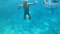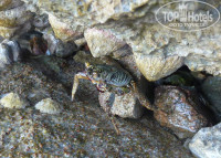 Море великолепное, бывало участками прохладное, но у берега тёплое. Наплавались с маской, насмотрелись всяких рыб, муж видел даже мурену, ближе к малому понтону. Вечером и рано утром много крабов, около берега плавают скаты.