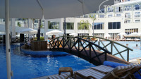 Говорят, впечатление зависит от настроения.... Настроение по приезду на отдых в отель оставляло желать лучшего. Полгода непрерывной работы "на галерах собственного бизнеса" накопили усталость, граничащую с депрессией. Состояние перед даун-шифтингом. Хотелось одного - чтобы все отстали. Но, не тут-то было. С первых же шагов по мраморному полу отеля я ощутила, что я Королевишна, что меня тут только все и ждали. Надо отдать должное культурным и психологическим особенностям межличностных отношений в этой замечательной стране. Здесь тебя ни на секунду не выпускают из поля зрения - тотальная слежка, но деликатная и предупредительная. ...Для твоего же блага.. Тактично, только самую малость навязчиво, тебя вовлекают в процесс активного отдыха…. О-о-очень грамотный, о-о-очень опытный персонал. Каждый на своем месте, у каждого своя функция, на выходе - слаженная симфония..., которую оживляют яркими вспышками веселья симпатичные аниматоры.. Так вот, про персонал, Мы-то с Вами знаем, что кадры решают все. В связи с этим, особенно хочется отметить проницательного управляющего СПА-салоном Густава и коллектив СПА-терапевтов - все дипломированы. В салоне огромный выбор СПА-процедур, индивидуальные оздоровительные программы, прекрасные массажисты - кожу превращают в шелк, интерьер, музыка - все на высоте…. Причем сравнительно недорого.. 500 долларов в общей сложности за почти ежедневные 1,5 часовые СПА-процедуры - это ж подарок судьбы! А хамам, а пенный массаж, а солнце, а Средиземное море! Городок Кемер, территория и бухта пляжа настолько живописны, что 8Гб мало. Уезжала благодарная и счастливая со слезами на глазах, ..как из детского сада... Позволит Время-Бог, обязательно приеду снова..