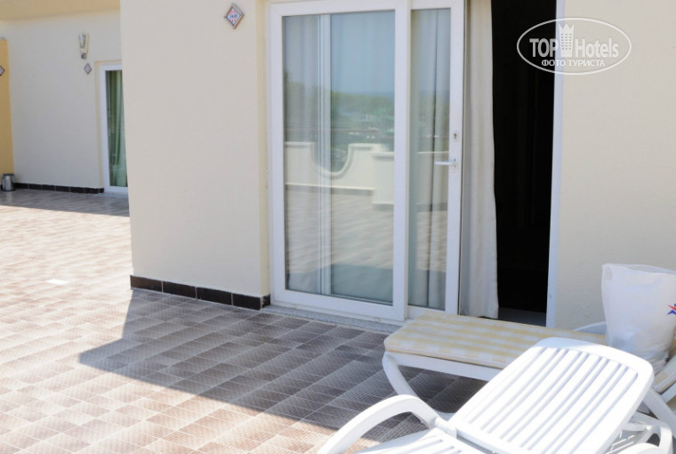 Не буду вдаваться в подробности, но на следующий день мы переехали в так называемый "люкс" из двух комнат. Находится на крыше 3-х этажного корпуса В, стоит отдельным домиком (№ 2403), вследствие чего сильно прогревается солнцем со всех сторон. Крыша является одновременно и террасой, которая очень сильно нагревается им смысла в ней нет, разве что когда не жарко.... Кондиционер находился только в одной комнате и он конечно не справлялся с нагрузкой, работая целый день, очень шумный - открыть балконную дверь невозможно. Слава богу были окна, открыть которые мы могли только глубокой ночью, когда заканчивалась очень шумная ночная дискотека клуба FLY, которая находится прямо напротив номера. Даже с закрытыми окнами ее было очень слышно. Окна другой комнаты выходили на бассейн -