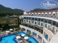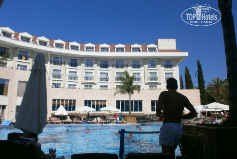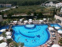 С первого взгляда отель понравился:большое,красивое здание,внутри все сделано со вкусом.С заселением проблем не было.Сначала дали номер без балкона с видом на дорогу,но на следующий день с помощью гида переселили в номер на 4 этаже с видом на бассейн,откуда мы частенько смотрели анимацию.