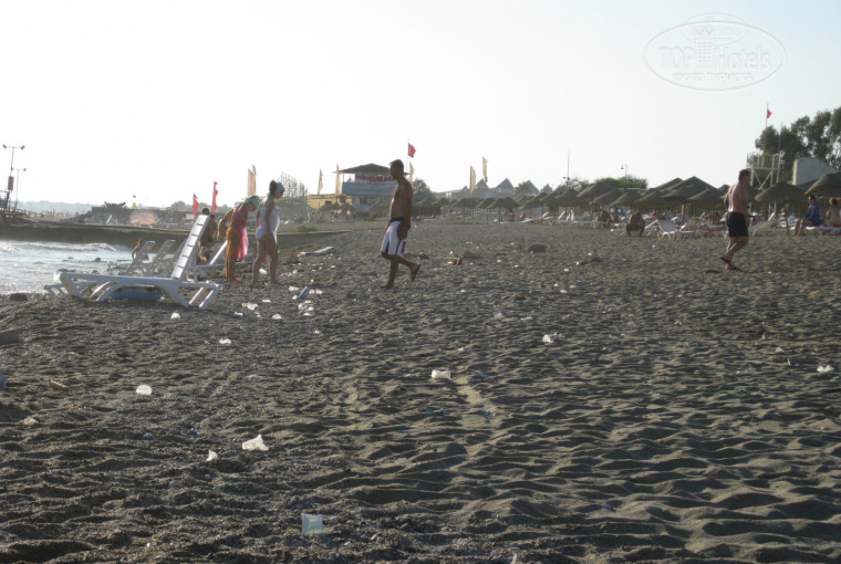 Пляж. Мда... ну тут много написано... и все верно. Вход - плиты. Ооочень грязно. Никто не убирает .. везде одноразовые стаканчик и прочий мусор. (фото прилагаю) Если погода ветреная, волны сильные .. зайти очень сложно.... ну без синяков не обошлось, ноги целы слава богу. Море первые два дня было все в водорослях , которые ещё и неприятно пахли. Потом видимо почистили. Что касается большого бассейна, в разгар дня когда он был полон отдыхающими, слили туда 4 канистры хлорки.