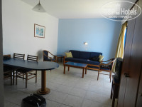 Номер: очень хороший! Мини-кухня, балкон, 2 кондиционера, кровать, диван, кресла, стулья и т.д. Есть всё необходимое. Фена в номере нет, его надо брать всё время на ресепшене под залог(у них называется депозит). Даешь им 10евро, они дают фен, пользуешься, возвращаешь в этот же день обратно и они отдают 10евро. Еще у них розетки не такие как у нас, и надо будет купить адаптер, который стоит 2евро, в минимаркете на территории отеля.