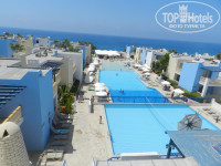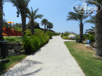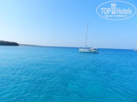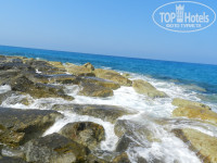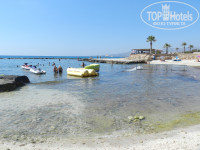 Пляж: идти не более 5 минут. Пляж один на четыре отеля. Сам пляж песчано-галечный, с бухтой, которая защищает от сильных волн. Есть шезлонги и зонтики. Вход в море-скользкий, т.к. в воде лежат большие плоские камни покрытые мхом. Был понтон, но до него надо еще дойти по этим скользким камням, да и сам он был скользкий, но одно хорошо-понтон с перилами. На пляже есть разные экстремальные виды спорта(парашют, гидроциклы, бананы, таблетки и т.п.). В общем, пляж не плохой!