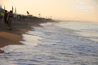 До пляжа ок. 400 м. Идти нужно по дорожке через цветущие олеандры, эвкалиптовую рощу. Несколоко раз по дороге на пляж встречали черепах. Вход в море не очень, у берега лежат большие валуны, лучше в воду заходить с немецкого пляжа, что находится по правую сторону, там песочек. И вообще, пляжная полоса очень большая, можно просто ходить вдоль берега по песку и воде и получать удовольствие.
