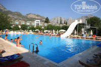 Бассейн: есть детский "лягушатник" и взрослый глубиной 140 см. Бассейн хороший, чистый. Из-а того, что там все в нем плещутся весь день, прыгают в него, вокруг бассейна часто были лужи воды, ходить аккуратно, смотреть под ноги, особенно тем, кто с детками едет - детки могут подскользнуться, упасть, удариться, и всё такое. Я это еще к тому, что помимо полученных ушибов и слез, вызов врача в отель платный, никак 30 долларов. Лежаки лучше занимать с самого утра, просто положив туда полотенце, тк с этим напряг - у бассейна людей всегда много днем. Складывается впечатление, что они не на море приехали, а в бассейне сидеть)) Мы были у бассейна всего 2-3 дня, остальное время на море. Есть горка, работает 2 часа в день, но один раз ее открывали в 4 часа ещё, то есть третий час в день. Я разок скатилась с нее, ничего, весело) трусы не порвала и задницу не ободрала об нее) Но, на мой взгляд, для деток горка может быть немного крутовата. У бассейна есть бар, там вода, соки, кофемашина, а также до 11 вечера там можно взять алкоголь, после 11 уже за денежку.